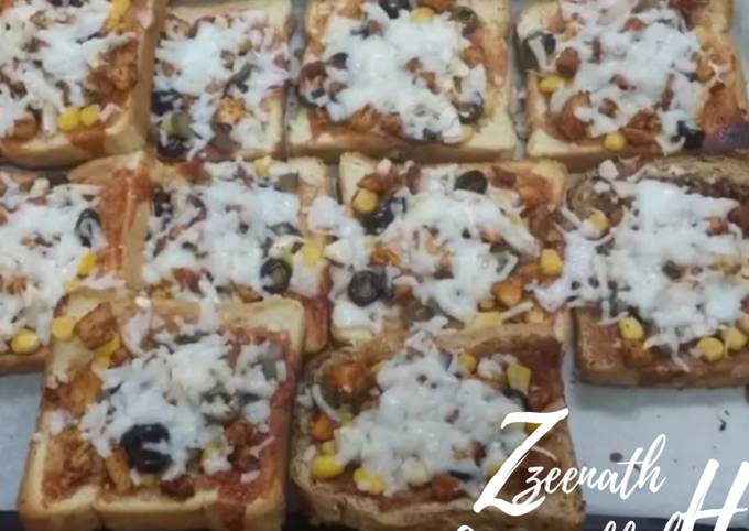 - Preheat your oven on 180° at first. Now start with the rest of the preparations. Spread Sauce on all the Bread slices. Top with all the colourful vegetables..
